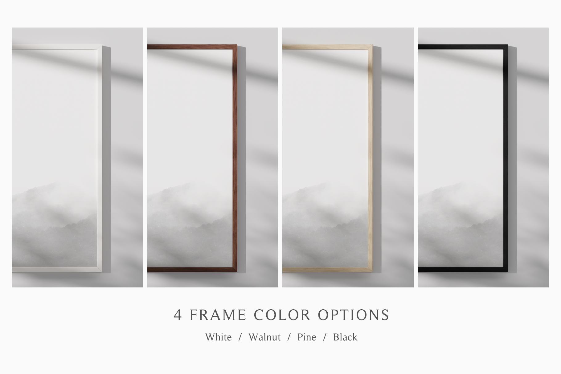 ㆍ4 frame color options (White, Walnut, Pine, and Black)